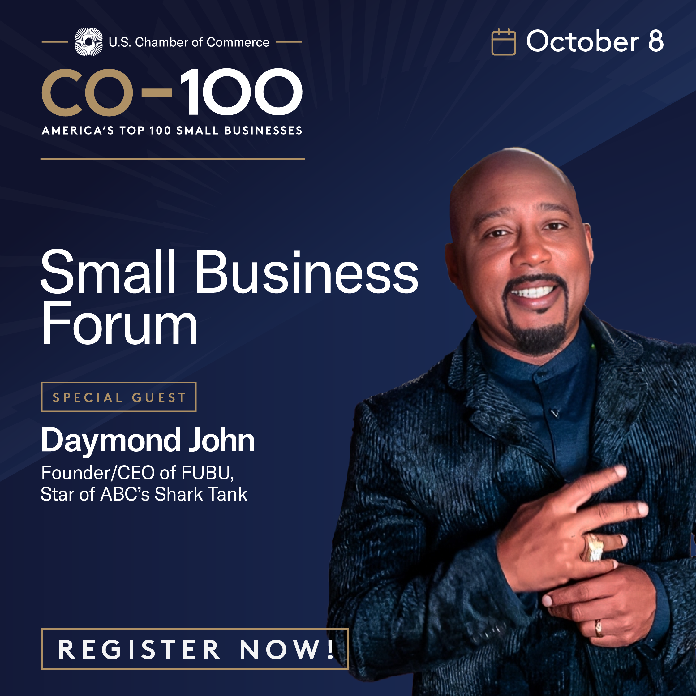 Registration is OPEN for the CO—100 Small Business Forum on October 8! Whether you attend virtually or in person, this is your chance to gain insights into trends, policy updates, and strategies to grow your business. Join CO—in D.C. for a live Q&A with Daymond John, entrepreneur and star of “Shark Tank.”
