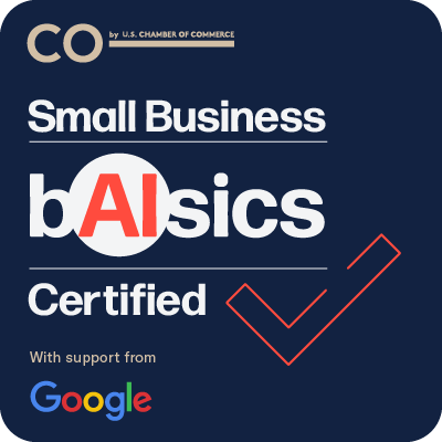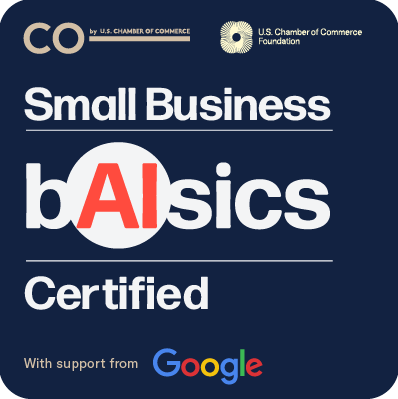 I'm excited to share that I recently completed Small Business B(AI)sics, a free AI training program from CO— the U.S. Chamber of Commerce, with support from Google. The course broke down AI in a clear, approachable way and introduced practical tools I can immediately apply to my business.