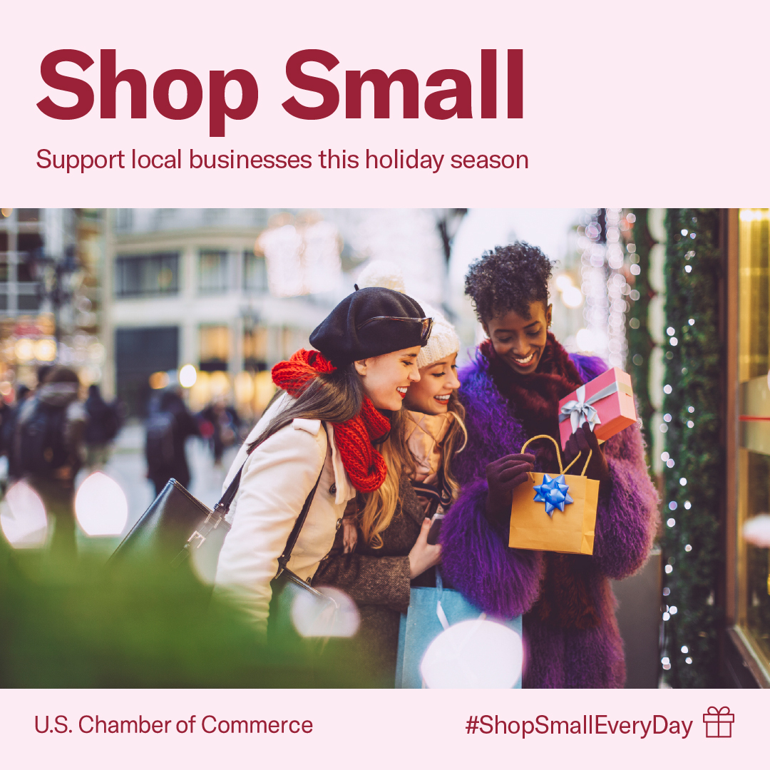 Join the U.S. Chamber of Commerce in promoting shopping small, investing in local communities, and celebrating the important role of small businesses play in our economy throughout the holiday season.