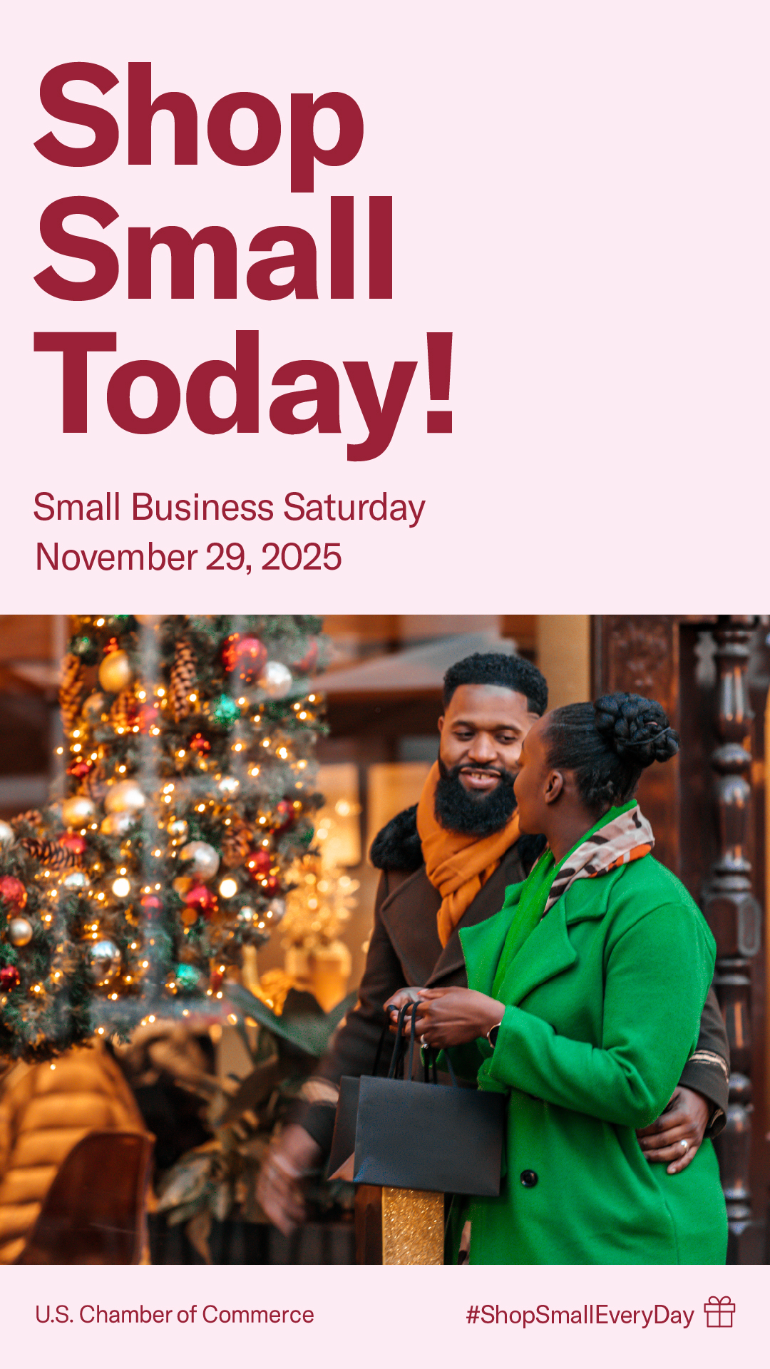 - Join us in celebrating small businesses this holiday season! Whether you're shopping for holiday gifts or treating yourself, remember that every purchase at a small business makes a difference. Let's support our local entrepreneurs and keep our communities vibrant and thriving. #ShopSmall #ShopSmallEveryDay