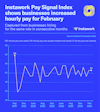 The Instawork Pay Signal Index shows the change in business’s hourly pay. Readings below 50 indicate more businesses lowering wages than raising them, and the opposite for readings above 50.